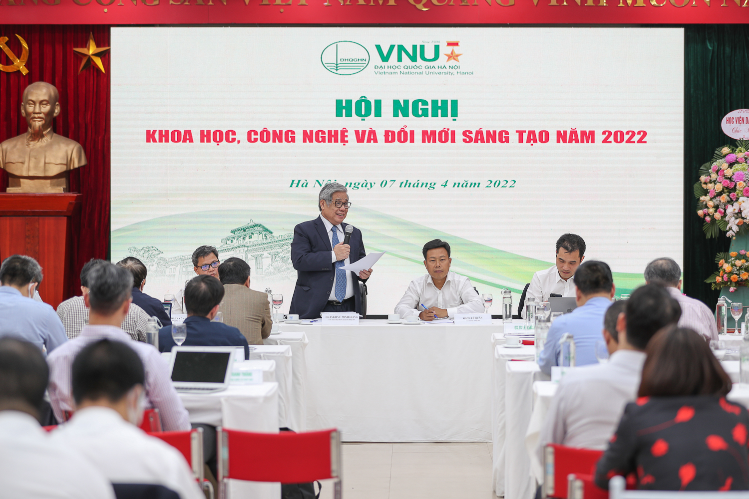 Chủ tịch Hội đồng Khoa học và Đào tạo ĐHQGHN Vũ Minh Giang đưa ra hai câu hỏi mà Ban Giám đốc ĐHQGHN cùng Hội đồng mong muốn các nhà khoa học cùng tham gia đóng góp ý kiến: thứ nhất, làm thế nào để gia tăng các sản phẩm khoa học và công nghệ của ĐHQGHN cả về chất lượng và số lượng?; thứ hai, làm sao để ứng dụng khoa học công nghệ vào thực tiễn cuộc sống.